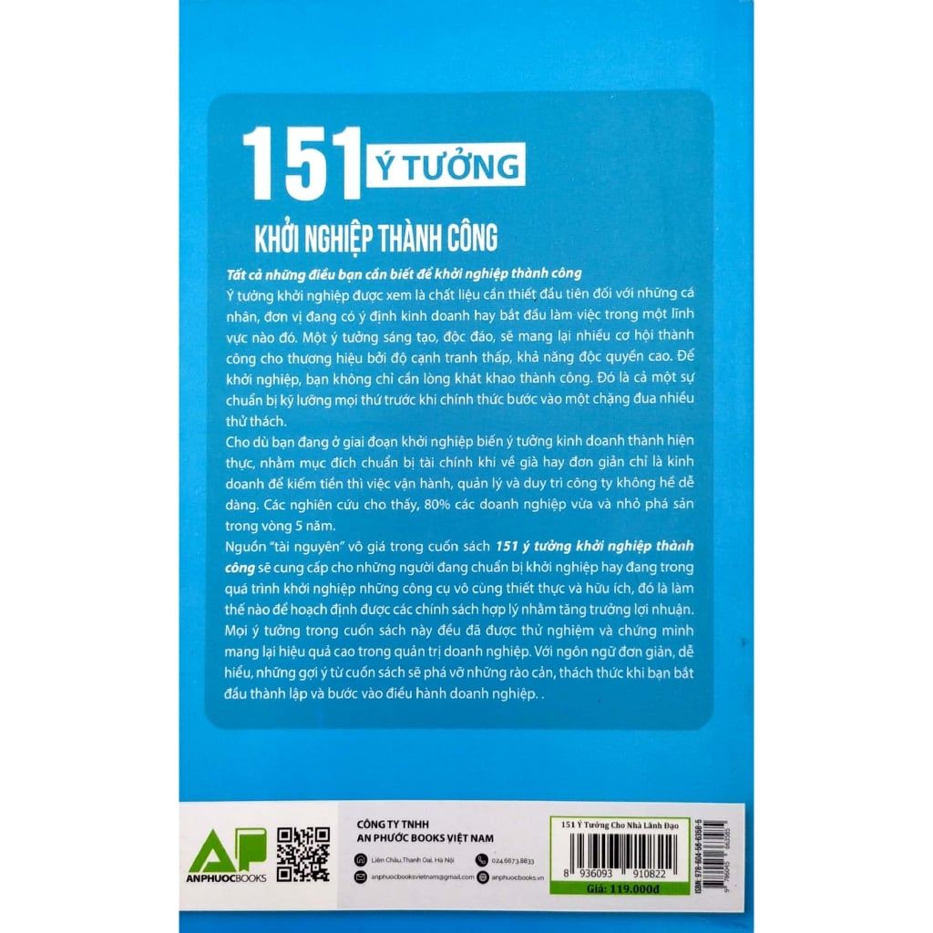 Mới đây, Công ty TNHH An Phước Books Việt Nam cùng NXB Phụ Nữ đã cho ra mắt bộ sách “151 ý tưởng cho nhà lãnh đạo”. Bộ sách này gồm 8 cuốn, mỗi cuốn viết về một vấn đề mà bất kỳ nhà lãnh đạo nào cũng quan tâm: Truyền cảm hứng cho nhân viên, khen thưởng nhân viên, làm sao để giải quyết các kỹ năng về nhân sự, khởi nghiệp thành công, nhà lãnh đạo thông minh cần có những ý tưởng nhanh, quyết đoán, ý tưởng thu hút khách hàng để họ tìm tới doanh nghiệp của mình…