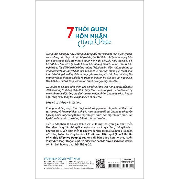 7 Thói quen hôn nhân hạnh phúc giúp bạn đọc vun đắp ba điều trên thông qua những bài học về nguyên lý và tạo thói quen hiệu quả được trình bày theo dạng 7 Thói quen quen thuộc:
