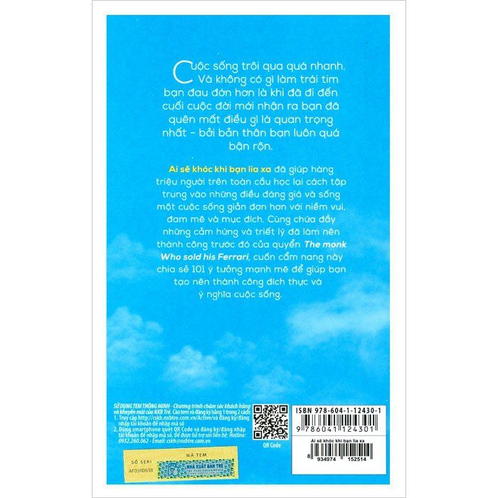 "Ai sẽ khóc khi bạn lìa xa" đã giúp hàng triệu người trên toàn cầu học lại cách tập trung vào những điều đáng giá và sống một cuộc sống giản đơn hơn với niềm vui, đam mê và mục đích. Cùng chứa đầy những cảm hứng và triết lý đã làm nên thành công trước đó của quyển The monk Who sold his Ferrari, cuốn cẩm nang này chia sẻ 101 ý tưởng mạnh mẽ để giúp bạn tạo nên thành công đích thực và ý nghĩa cuộc sống.