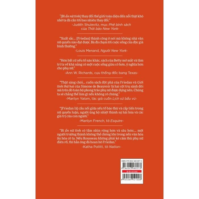 Betty Friedan đã viết nên bản tuyên ngôn riêng mình vào tháng 2-1963: The Feminine Mystique, cuốn sách mà ấn bản kỷ niệm 50 năm phát hành vừa được Đại học Hoa Sen cùng NXB Hồng Đức ra mắt với bản dịch tiếng Việt Bí ẩn nữ tính. Vấn đề của phụ nữ Mỹ những năm 1950-1960 được Betty nhắc tới đang là vấn đề của phụ nữ Việt Nam, và nhiều quốc gia khác trên thế giới, hiện nay. Chúng ta không chờ đợi một liều thuốc đặc trị cho hội chứng bí ẩn nữ tính, cũng như Betty Friedan không tham vọng cuốn sách của bà "bắt phụ nữ chấp nhận nó". Thế nhưng, có lý do để một cuốn sách tồn tại giá trị vượt thời gian. Bí ẩn nữ tính của Betty Friedan có sức mạnh của một ánh nhìn trí tuệ sắc bén đang xoáy trực diện vào bạn, phụ nữ. Nó khiến bạn phải tự đào sâu đối diện với câu hỏi "tôi là ai?" để tìm kiếm bản sắc, của một con người.