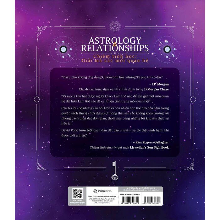 David Pond: Là nhà chiêm tinh học, tác giả sách, diễn giả, ông cũng thường xuyên tổ chức workshop quốc tế về chiêm tinh. David đã nghiên cứu chiêm tinh học suốt hơn 35 năm qua và bằng kiến thức có được, ông đã cố vấn cho nhiều khách hàng, giúp họ chủ động hơn trước những chuyển biến trong đời, sống ý nghĩa và trọn vẹn hơn. Ông đã từng xuất bản nhiều đầu sách về đề tài huyền học, bao gồm Chakras for Beginners, Western Seeker, Eastern Paths và Chakras for Beginner: Awakening to the Power Within. Lấy chiêm tinh học làm lăng kính, cuốn sách Chiêm tinh học: Giải mã các mối quan hệ chính là những đúc kết tinh hoa sau nhiều thập kỷ chuyên tâm nghiên cứu với lòng nhiệt thành vun đắp những mối quan hệ ngập tràn yêu thương trong suốt cuộc đời David. Những bài tập và ví dụ minh họa dễ hiểu nhưng không kém phần sâu sắc của anh sẽ giúp bạn mở thêm nhiều cánh cửa dẫn đến yêu thương. Đây quả là một quyển sách tuyệt vời để nghiên cứu và thưởng thức.