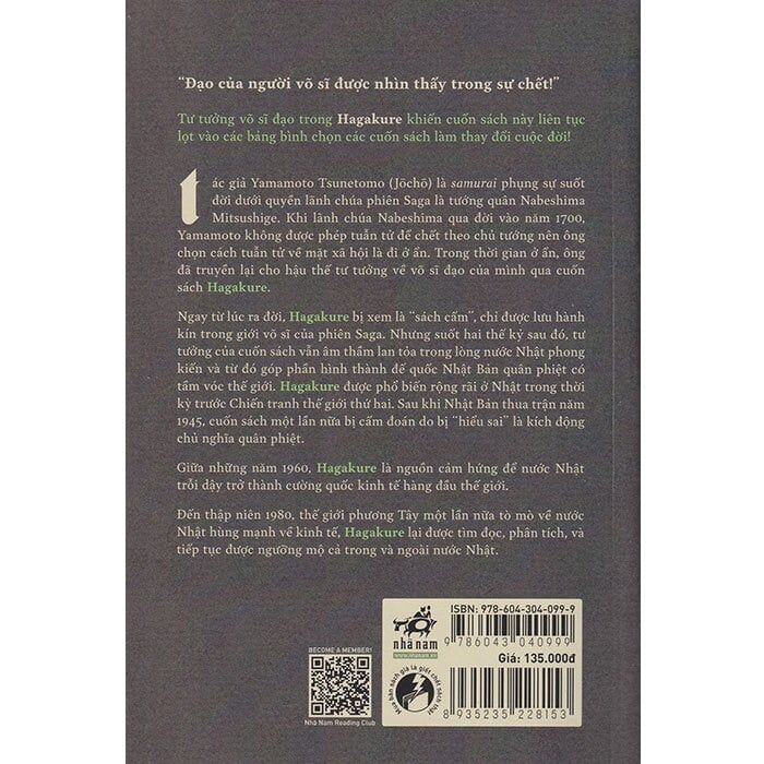Tư tưởng võ sĩ đạo trong Hagakure khiến cuốn sách này liên tục lọt vào các bảng bình chọn các cuốn sách làm thay đổi cuộc đời!