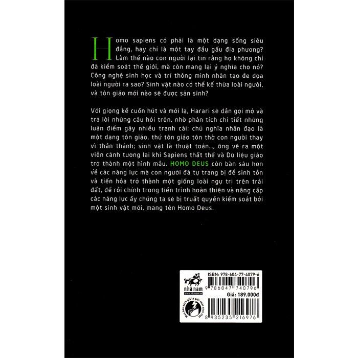 Với giọng kể cuốn hút và mới lạ, Harari sẽ dần gợi mở và trả lời những câu hỏi trê, nhờ phân tích chi tiết những luận điểm gây nhiều tranh cãi: chủ nghĩa nhân đạo là một dạng tôn giáo, thứ tôn giáo tôn thờ con người thay vì thần thánh; sinh vật là thuật toán… ông vẽ ra một viễn cảnh tương lai khi Sapiens thất thế và Dữ liệu giáo trở thành một hình mẫu. HOMO DEUS còn bàn sâu hơn về các năng lực mà con người đã tự trang bị để sinh tồn và tiến hoá thành một giống loài ngự trị trên trái đất, để rồi chính trong tiến trình hoàn thiện và nâng cấp các năng lực ấy chúng ta sẽ bị truất quyền kiểm soát bởi một sinh vật mới, mang tên Homo Deus.