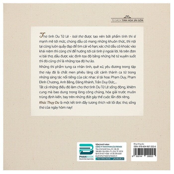 Tập thơ gói lại rất nhiều sáng tác nổi tiếng của Du Tử Lê: Khúc Thụy Du, Khi tôi chết hãy đem tôi ra biển, Ta tiếc thiên đường mới lập xong, Người từ phương Đông qua,… và cập nhật sáng tác mới nhất của ông: Nuôi người, trang sách thơm.