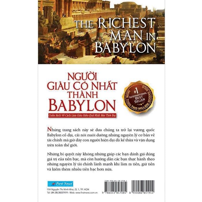 Người giàu có nhất thành Babylon sẽ đưa chúng ta trở lại vương quốc Babylon cổ đại, cái nôi nuôi dưỡng những nguyên lý cơ bản về tài chính mà giờ đây con người hiện đại đã kế thừa và vận dụng trên toàn thế giới. Người giàu có nhất thành Babylon liên tục là cuốn sách bán chạy ở Việt Nam trong nhiều năm. Trong lần tái bản này, First News bổ sung thêm 2 chương mới là “Những bức tường thành Babylon” và “Những tấm thẻ đất sét từ Babylon”, cùng một số chi tiết khác, với một thiết kế mới nhằm phục vụ bạn đọc tốt hơn.