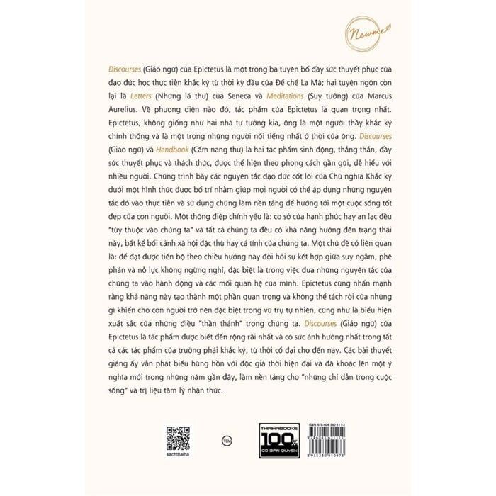 Discourses (Những bài thuyết giảng) của EPICTETUS tạo thành một trong ba tuyên bố đầy sức thuyết phục của đạo đức học thực tiễn Khắc kỷ từ thời kỳ đầu của Đế chế La Mã; hai tuyên ngôn còn lại là Những lá thư của Seneca và Meditations (Suy tưởng) của Marcus Aurelius. Về phương diện nào đó, tác phẩm của Epictetus là quan trọng nhất. Epictetus, không giống như hai nhà tư tưởng kia, ông là một giáo viên Khắc kỷ chính thống và là một trong những người nổi tiếng nhất ở thời của ông.