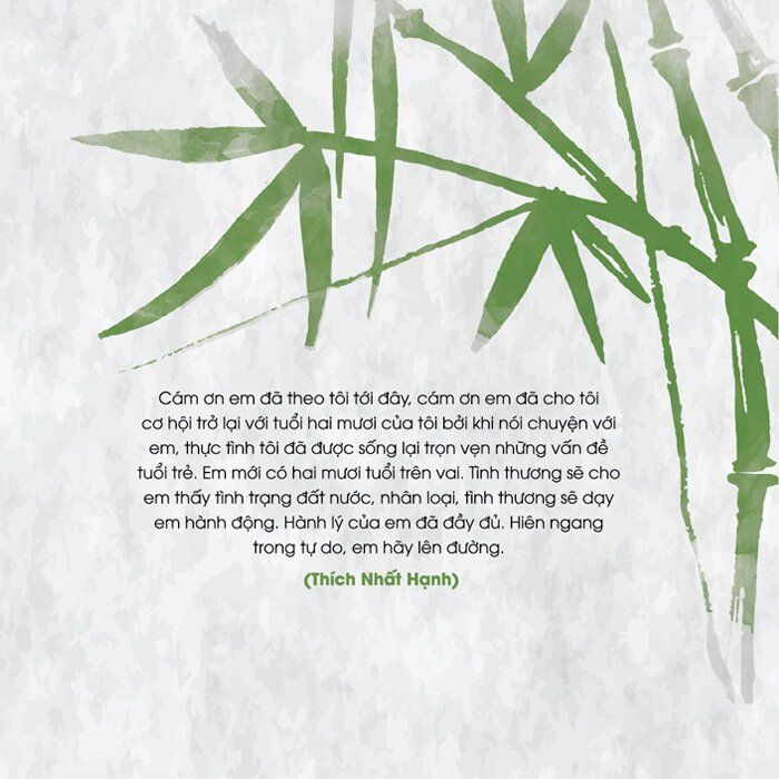 Những lời chia sẻ của Thiền Sư thấm sâu vào lòng những người trẻ tuổi, khơi gợi những ước mơ hoài bão, khơi dậy sức sống dạt dào trong trái tim của họ, làm bừng cháy những yêu thương. Nói với tuổi hai mươi tìm thấy điểm đồng điệu trong lời thơ của Tố Hữu: "20 tuổi hồn quay trong gió bão/ gân đang xanh và thớ thịt căng da", và sức trẻ đó phải được tỏa sáng trong tình yêu và trách nhiệm với đất nước, trong lý tưởng và khát vọng, trong tình yêu và cuộc sống của mình.