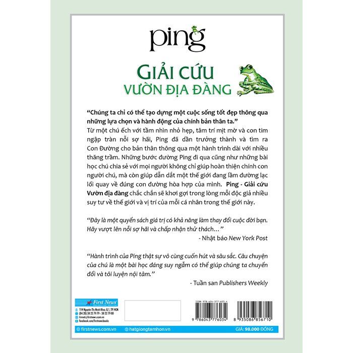Nếu nói một vài cuốn sách có thể thay đổi cách bạn nghĩ, một vài cuốn khác lại thay đổi cách bạn sống, thì “Ping – Giải cứu Vườn địa đàng” làm được cả hai điều đó.