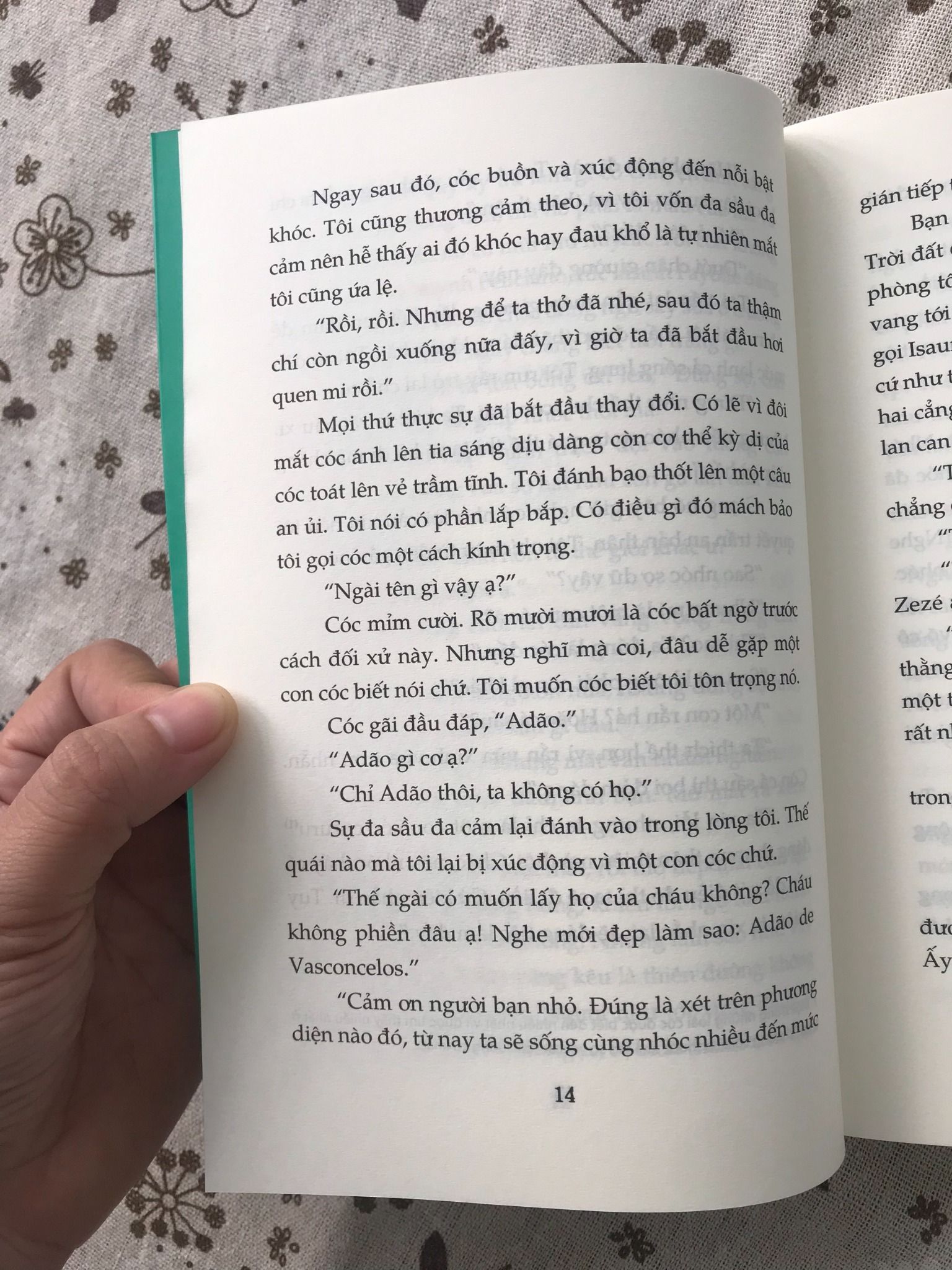 Nhưng, may thay, Zezé đã tìm được những người bạn mới – cả ở đời thực lẫn trong tưởng tượng – luôn thấu hiểu và sát cánh bên cậu, cùng cậu đi qua hết thày những niềm vui cùng nỗi buồn, những khổ sở, thất vọng, những phiêu lưu mạo hiểm, giúp cậu đối thoại với cuộc sống muôn màu muôn vẻ, với nội tâm đầy mâu thuẫn và đồng thời với cả nỗi buồn thương sâu thẳm trong tâm hồn.