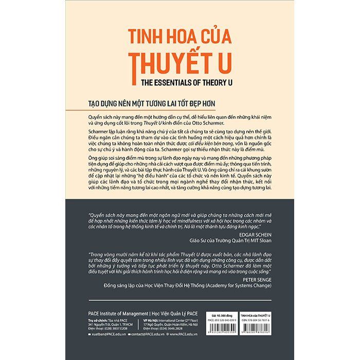 “Quyển sách này mang đến một ngôn ngữ mới và giúp chúng ta có những cách mới mẻ để hợp nhất những kiến thức tâm lý học về mindfulness với xã hội học trong các nhóm và các nhân tố trong hệ thống kinh tế và chính trị. Nó là một thành tựu đáng kinh ngạc.” - EDGAR SCHEIN, Giáo Sư của Trường Quản Trị MIT Sloan C. Otto Scharmer đã mang đến một hướng dẫn cụ thể, dễ hiểu liên quan đến những khái niệm và ứng dụng cốt lõi của Thuyết U kinh điển trong cuốn sách “Tinh hoa của Thuyết U”.