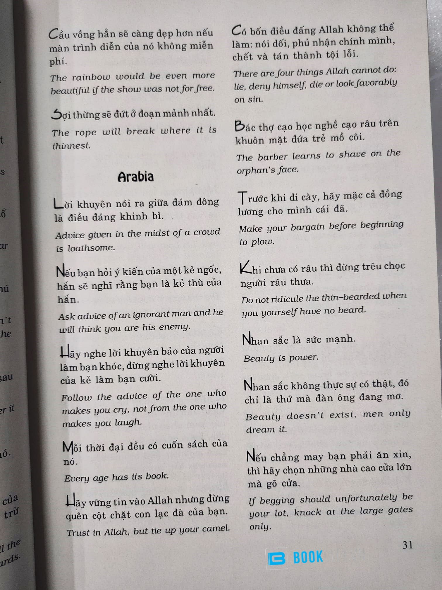 Trong khi làm công việc sưu tầm hàng ngàn câu tục ngữ như thế, tác giả khám phá rằng tục ngữ thật sự không có biên giới, chúng mang tính toàn cầu. Dần đọc toàn bộ cuốn sách (với 6.000 câu tục ngữ Anh - Việt), chắc chắn bạn cũng sẽ ngạc nhiên một cách đầy thú vị khi thấy có rất nhiều câu tục ngữ không phải là “của cải” riêng của một đất nước.