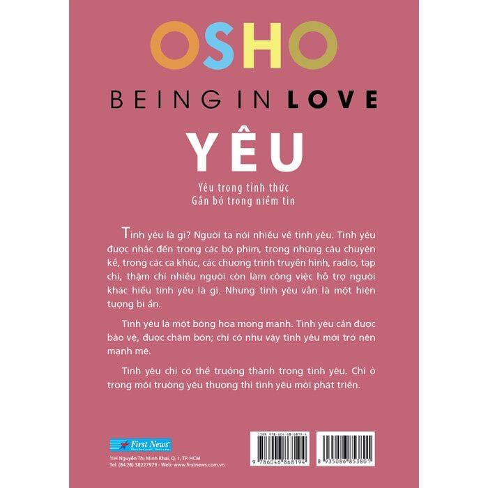 Chúng ta thường sợ hãi khi nghĩ về tình yêu, ta e ngại những nỗi đau lẫn rắc rối mà nó đem đến. Với “Yêu”, bằng giọng văn cá tính và cuốn hút đặc trưng, Osho đem đến sự thấu hiểu trọn vẹn về tình yêu, đồng thời truyền niềm tin và sự dũng cảm để bạn đọc bước vào trải nghiệm phức tạp này một cách mới mẻ trong thứ ánh sáng tỉnh thức của tâm linh. “Tình yêu chỉ có thể trưởng thành trong tình yêu”, ông nói, “Có điều gì đó thật đẹp đang chờ bạn phía trước. Nếu bạn có thể chờ đợi, nếu bạn có đủ kiên nhẫn và có thể tin tưởng, nó sẽ đến”.